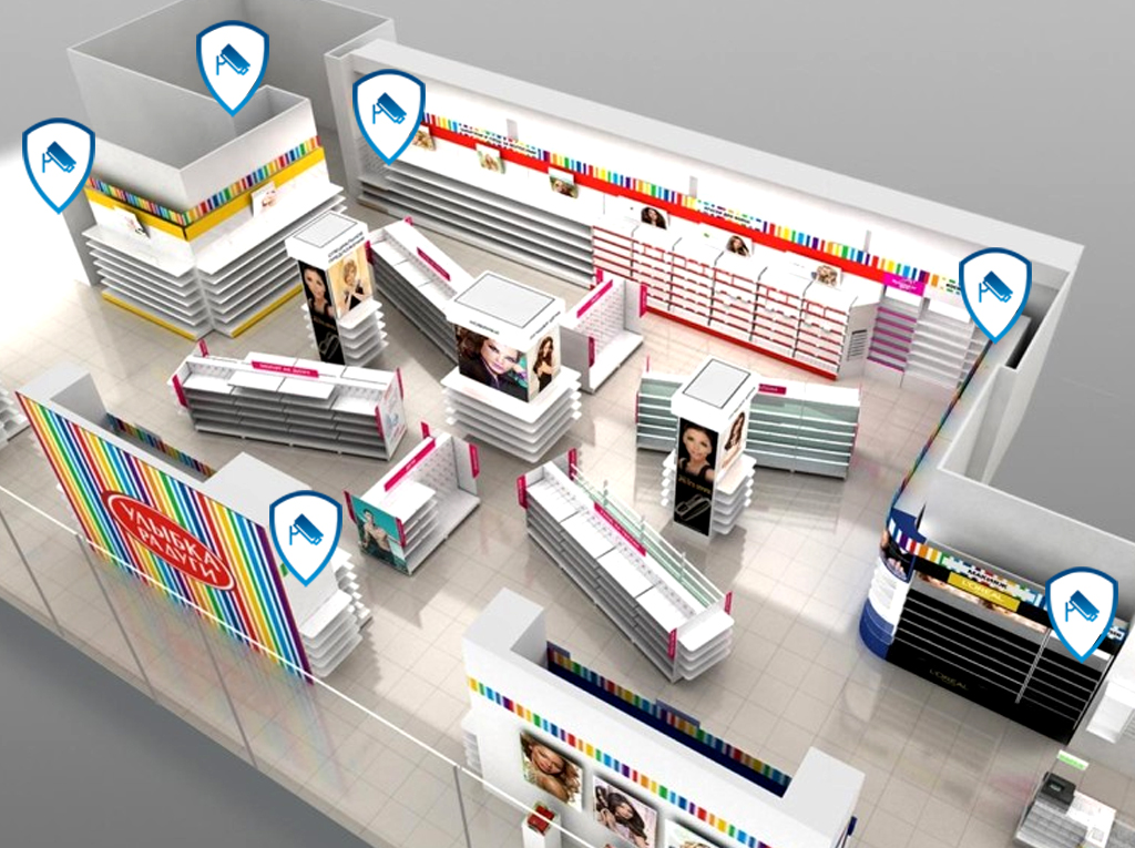 -   Вести круглосуточный мониторинг за периметром магазина, парковкой, а также торговой и подсобной зоны.